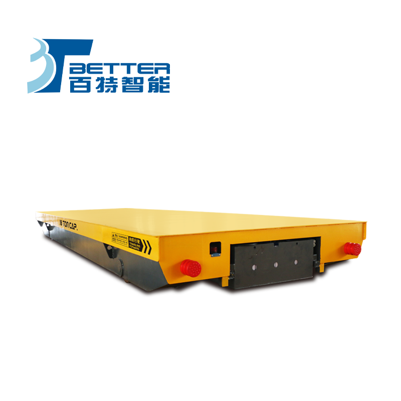 12噸無軌運輸平板車是一種電動有軌廠內運輸車輛。又稱臺車、過跨車、地爬車。它具有結 構簡單、使用方便、容易維護、承載能力大、污染少等優點,而作為短距離運輸工具得到廣 泛應用,也可作為車間內部配合吊車運輸重物過跨之用。