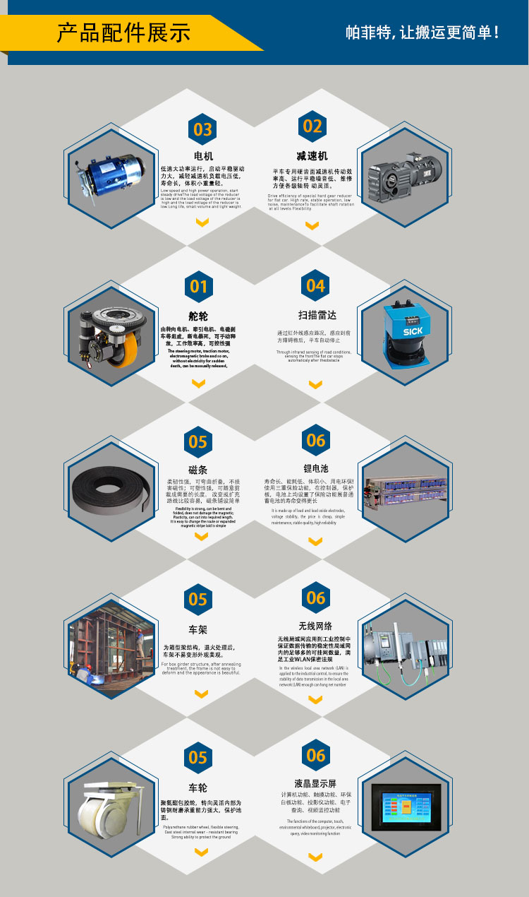 AGV智能旅游觀光車全自動化無人操作的功能讓它更加智能,嫣然成為工業4.0時代的產物。適應爬坡、防爆、粉塵等各種場合,150T大載重量的誕生,使其躍居車間搬運設備的重要位置,成為了“質量”的代名詞。